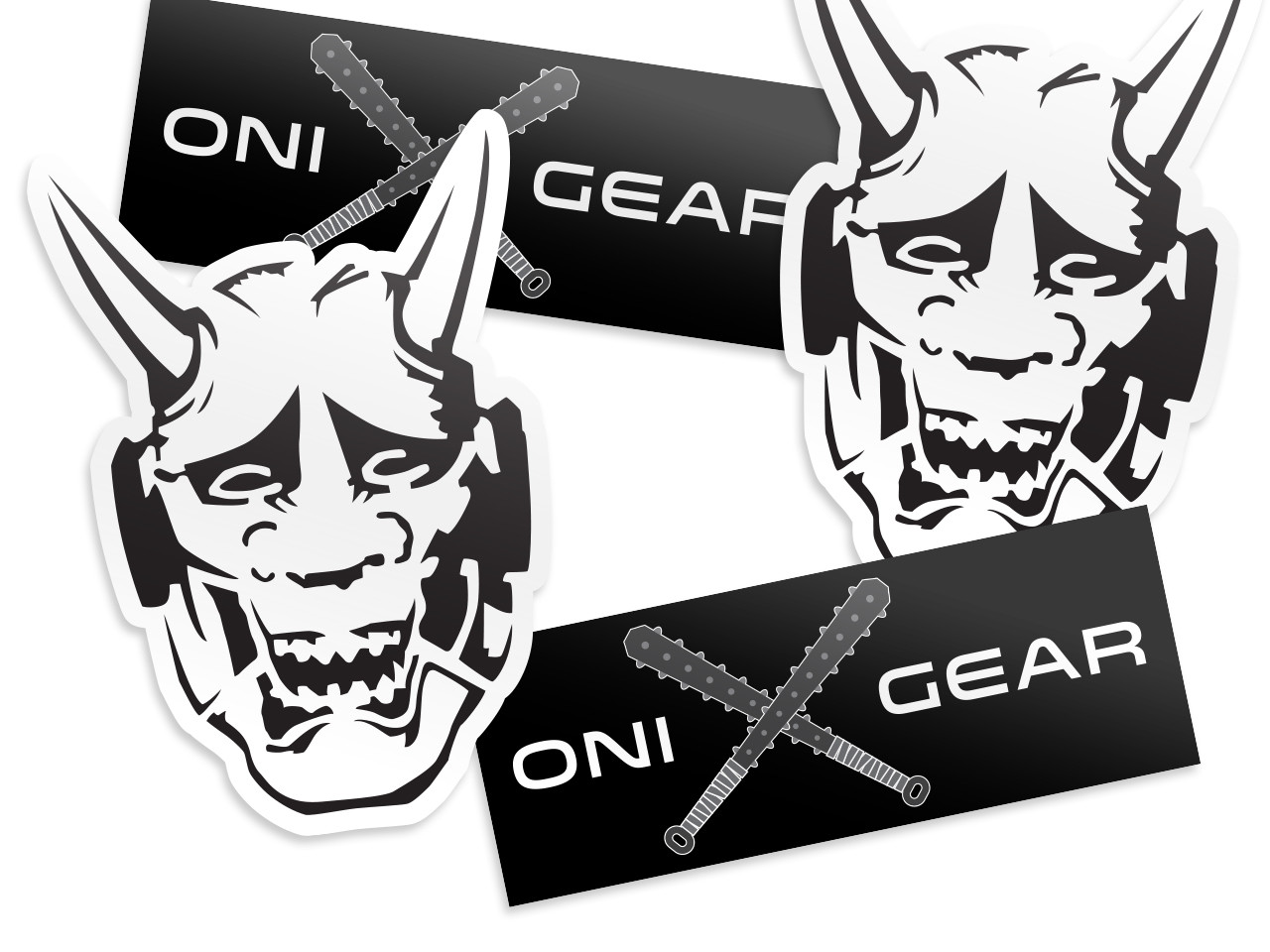 Oni Skull Logo Slaps measure 3" wide and 4" tall. Kanabo Slaps Measures 4" wide and 1" tall.